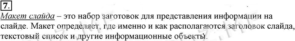 Подробный вариант решения из решебника (ГДЗ): Задание номер 7 (§5.2. Компьютерные презентации. Cтраницы 221-224) по предмету Информатика, за 7 класс, авторы учебника Босова.