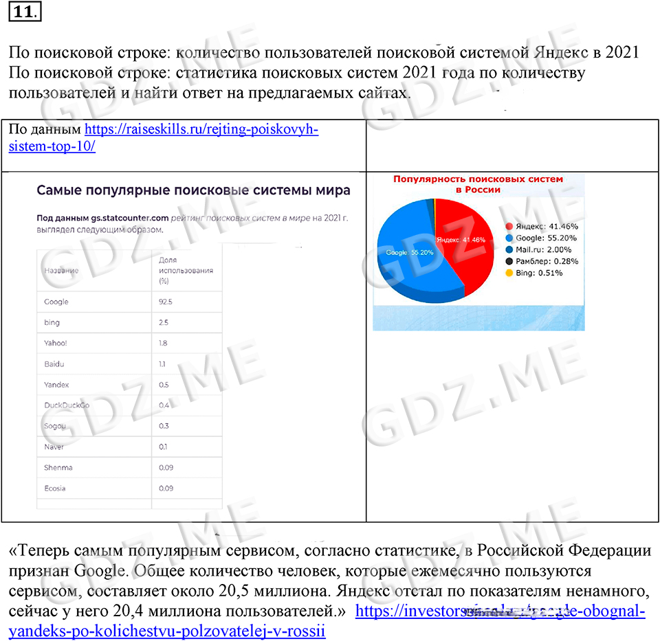 Подробный вариант решения из решебника (ГДЗ): Задание номер 11 (§1.3. Всемирная паутина. Cтраницы 23-30) по предмету Информатика, за 7 класс, авторы учебника Босова.