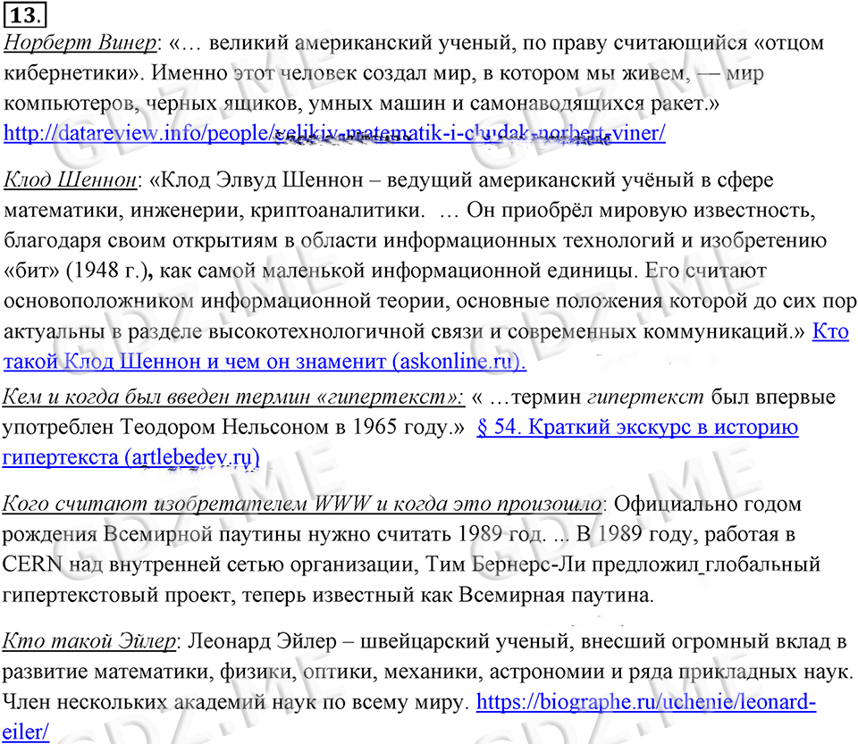 Подробный вариант решения из решебника (ГДЗ): Задание номер 13 (§1.3. Всемирная паутина. Cтраницы 23-30) по предмету Информатика, за 7 класс, авторы учебника Босова.