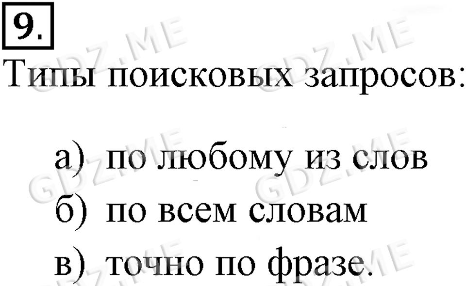 Подробный вариант решения из решебника (ГДЗ): Задание номер 9 (§1.3. Всемирная паутина. Cтраницы 23-30) по предмету Информатика, за 7 класс, авторы учебника Босова.
