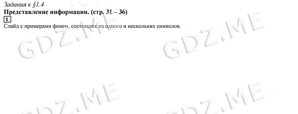 Подробный вариант решения из решебника (ГДЗ): Задание номер 1 (§1.4. Представление информации. Cтраницы 31-26) по предмету Информатика, за 7 класс, авторы учебника Босова.