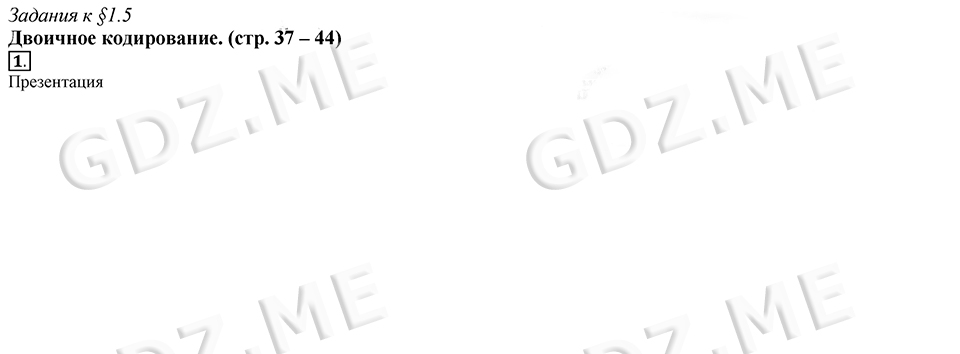 Подробный вариант решения из решебника (ГДЗ): Задание номер 1 (§1.5. Двоичное кодирование. Cтраницы 37-44) по предмету Информатика, за 7 класс, авторы учебника Босова.