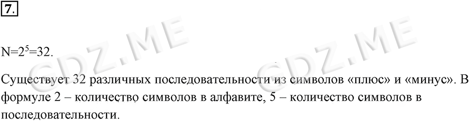 Подробный вариант решения из решебника (ГДЗ): Задание номер 7 (§1.5. Двоичное кодирование. Cтраницы 37-44) по предмету Информатика, за 7 класс, авторы учебника Босова.