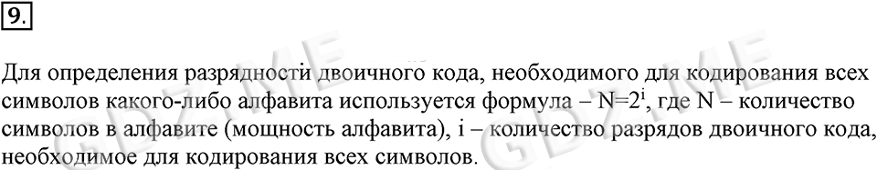 Подробный вариант решения из решебника (ГДЗ): Задание номер 9 (§1.5. Двоичное кодирование. Cтраницы 37-44) по предмету Информатика, за 7 класс, авторы учебника Босова.