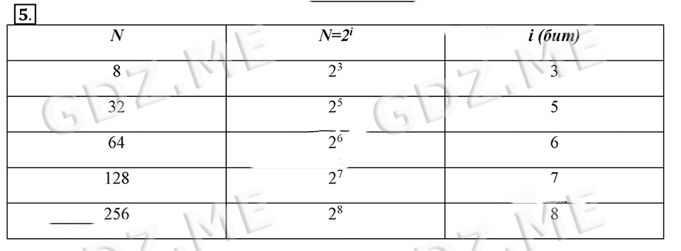 Подробный вариант решения из решебника (ГДЗ): Задание номер 5 (§1.6. Измерение информации. Cтраницы 44-52) по предмету Информатика, за 7 класс, авторы учебника Босова.