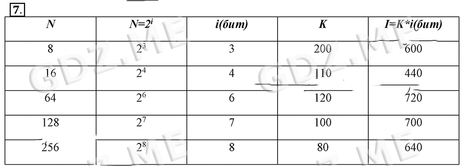 Подробный вариант решения из решебника (ГДЗ): Задание номер 7 (§1.6. Измерение информации. Cтраницы 44-52) по предмету Информатика, за 7 класс, авторы учебника Босова.