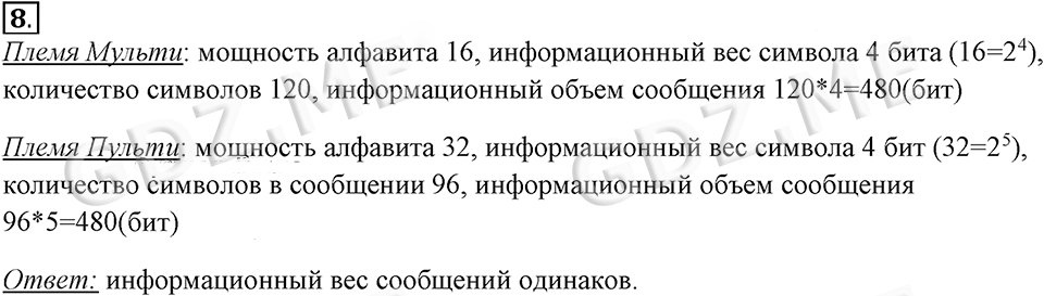 Подробный вариант решения из решебника (ГДЗ): Задание номер 8 (§1.6. Измерение информации. Cтраницы 44-52) по предмету Информатика, за 7 класс, авторы учебника Босова.