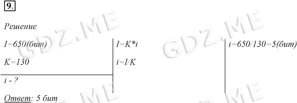 Подробный вариант решения из решебника (ГДЗ): Задание номер 9 (§1.6. Измерение информации. Cтраницы 44-52) по предмету Информатика, за 7 класс, авторы учебника Босова.