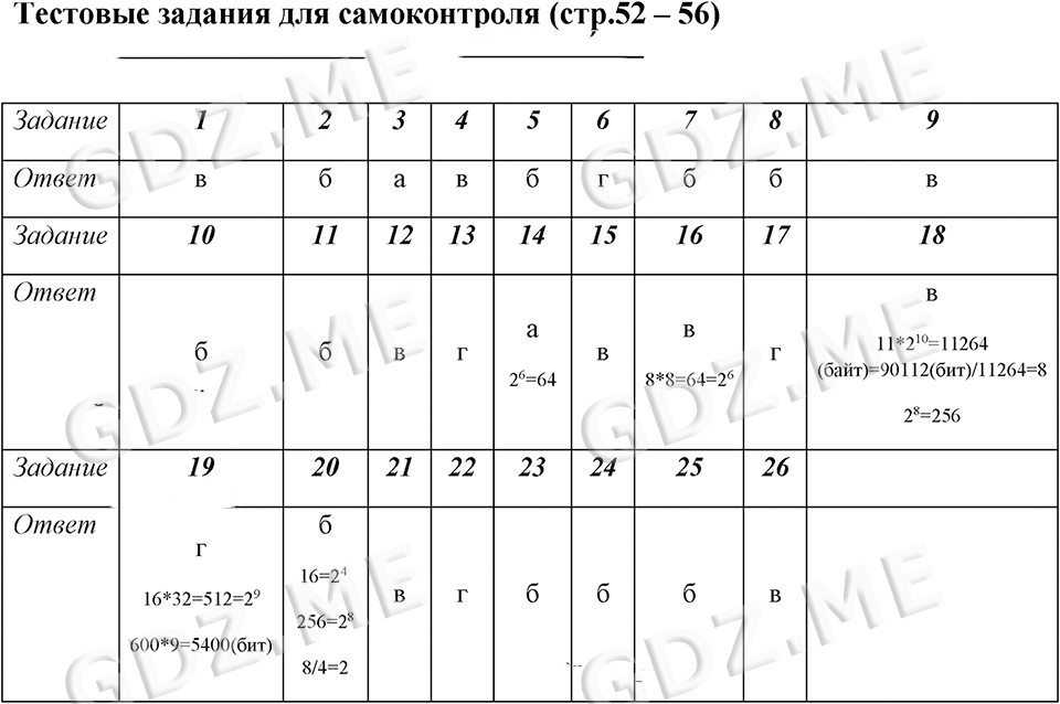 Подробный вариант решения из решебника (ГДЗ): Задание номер 52.56.test (Cтраницы 52-56) по предмету Информатика, за 7 класс, авторы учебника Босова.