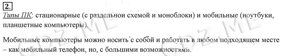 Подробный вариант решения из решебника (ГДЗ): Задание номер 2 (§2.2. Персональный компьютер. Cтраницы 65-72) по предмету Информатика, за 7 класс, авторы учебника Босова.