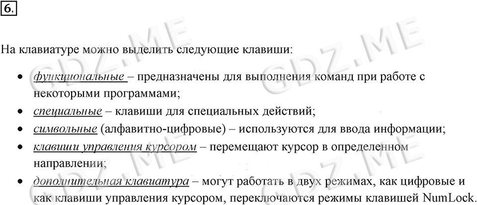 Подробный вариант решения из решебника (ГДЗ): Задание номер 6 (§2.2. Персональный компьютер. Cтраницы 65-72) по предмету Информатика, за 7 класс, авторы учебника Босова.