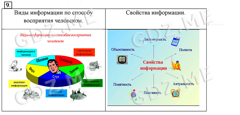 Подробный вариант решения из решебника (ГДЗ): Задание номер 9 (§1.1. Информация и её свойства. Cтраницы 7-12) по предмету Информатика, за 7 класс, авторы учебника Босова.