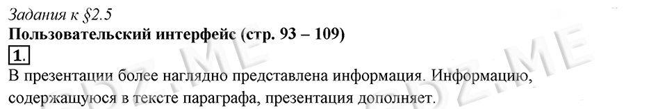 Подробный вариант решения из решебника (ГДЗ): Задание номер 1 (§2.5. Пользовательский интерфейс. Cтраницы 93-109) по предмету Информатика, за 7 класс, авторы учебника Босова.