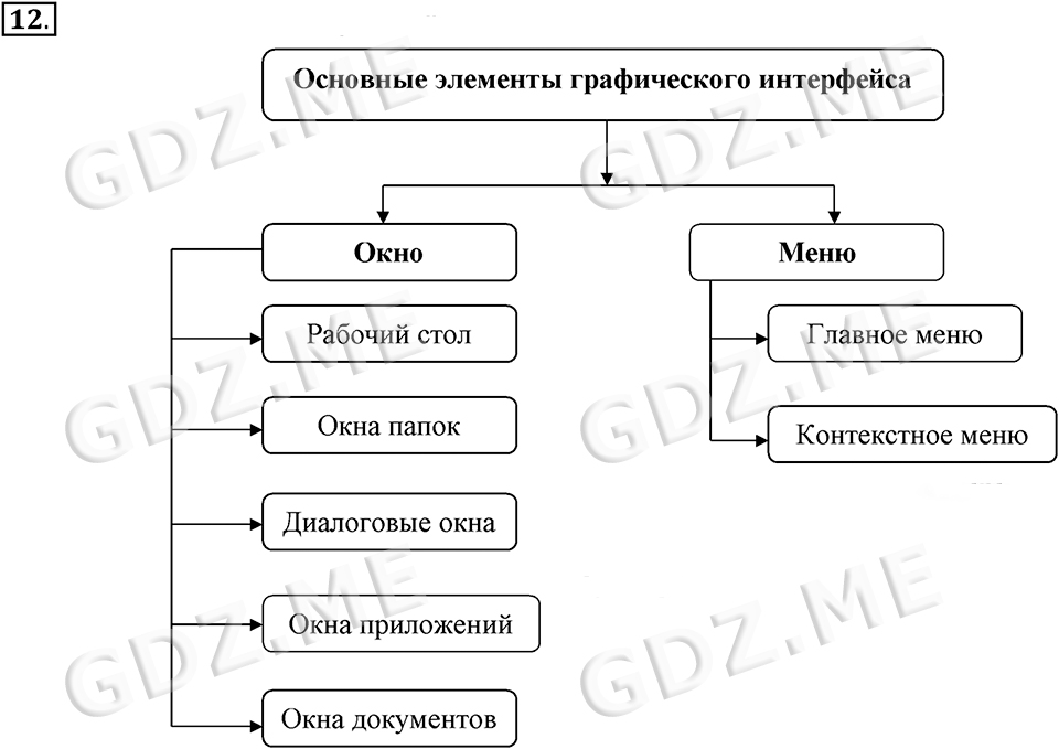 Подробный вариант решения из решебника (ГДЗ): Задание номер 12 (§2.5. Пользовательский интерфейс. Cтраницы 93-109) по предмету Информатика, за 7 класс, авторы учебника Босова.