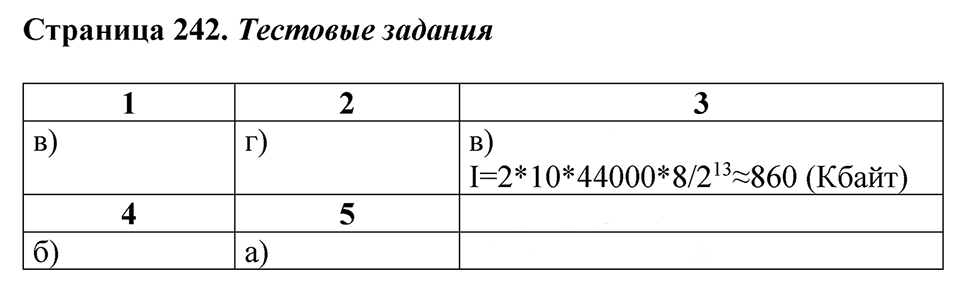 Подробный вариант решения из решебника (ГДЗ): Задание номер 242.test (Глава 5) по предмету Информатика, за 7 класс, авторы учебника Босова.