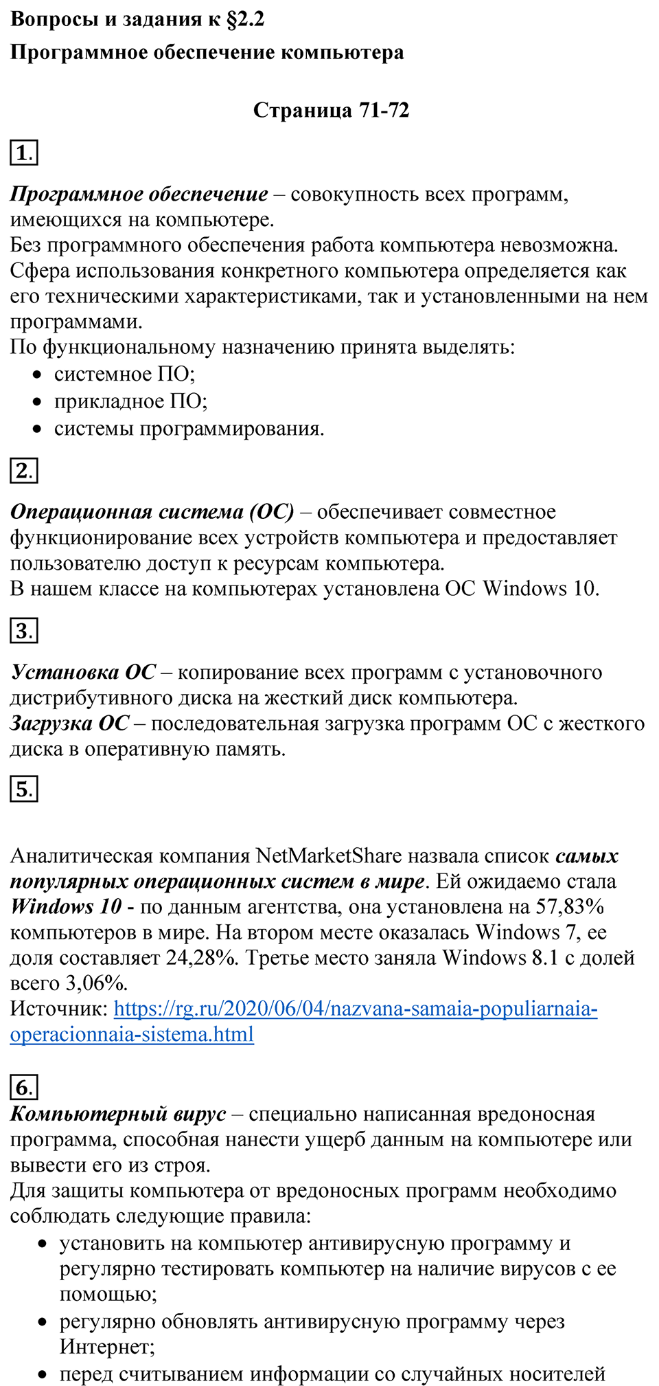 Подробный вариант решения из решебника (ГДЗ): Задание номер 71.72.1 (Глава 2) по предмету Информатика, за 7 класс, авторы учебника Босова.