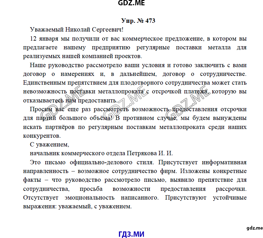Подробный вариант решения из решебника (ГДЗ): Задание номер 473 по предмету Русский язык, за 7 класс, авторы учебника Баранов М.Т., Ладыженская Т.А., Тростенцова Л.А..