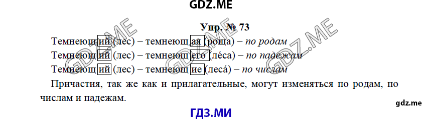 Подробный вариант решения из решебника (ГДЗ): Задание номер 73 по предмету Русский язык, за 7 класс, авторы учебника Баранов М.Т., Ладыженская Т.А., Тростенцова Л.А..