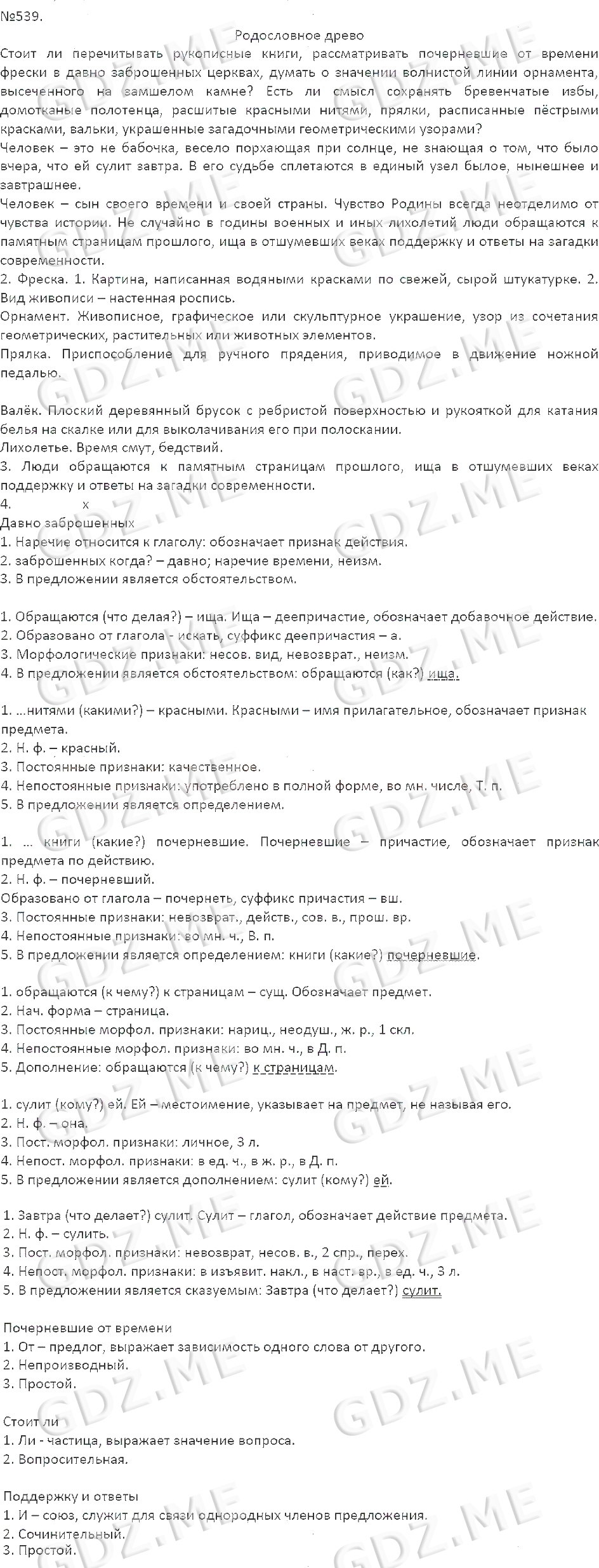 Подробный вариант решения из решебника (ГДЗ): Номер номер 539 (НОМЕРА РЕШЕНИЙ. Упражнения) по предмету Русский язык, за 7 класс, авторы учебника М.М. Разумовская, С.И. Львова, В.И. Капинос.