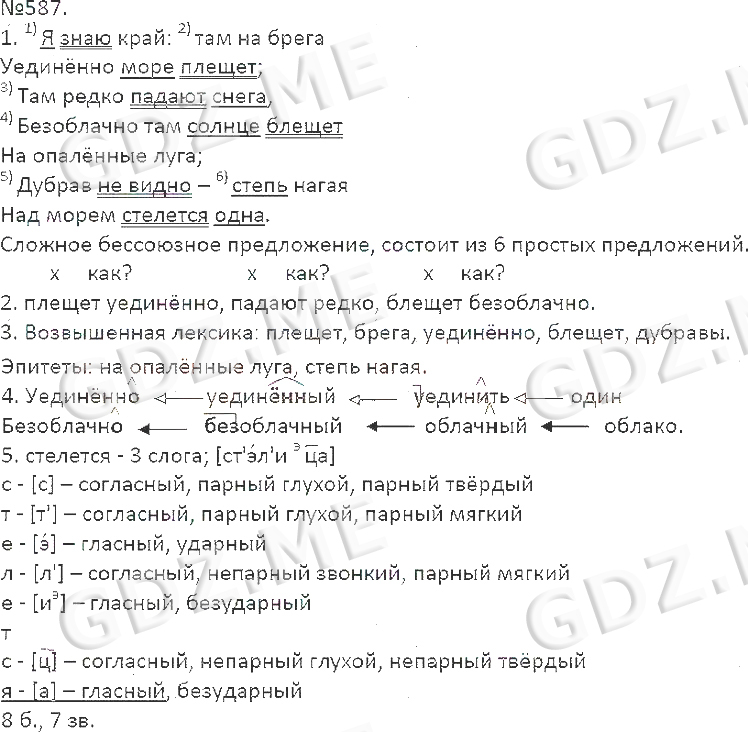 Подробный вариант решения из решебника (ГДЗ): Номер номер 587 (НОМЕРА РЕШЕНИЙ. Упражнения) по предмету Русский язык, за 7 класс, авторы учебника М.М. Разумовская, С.И. Львова, В.И. Капинос.