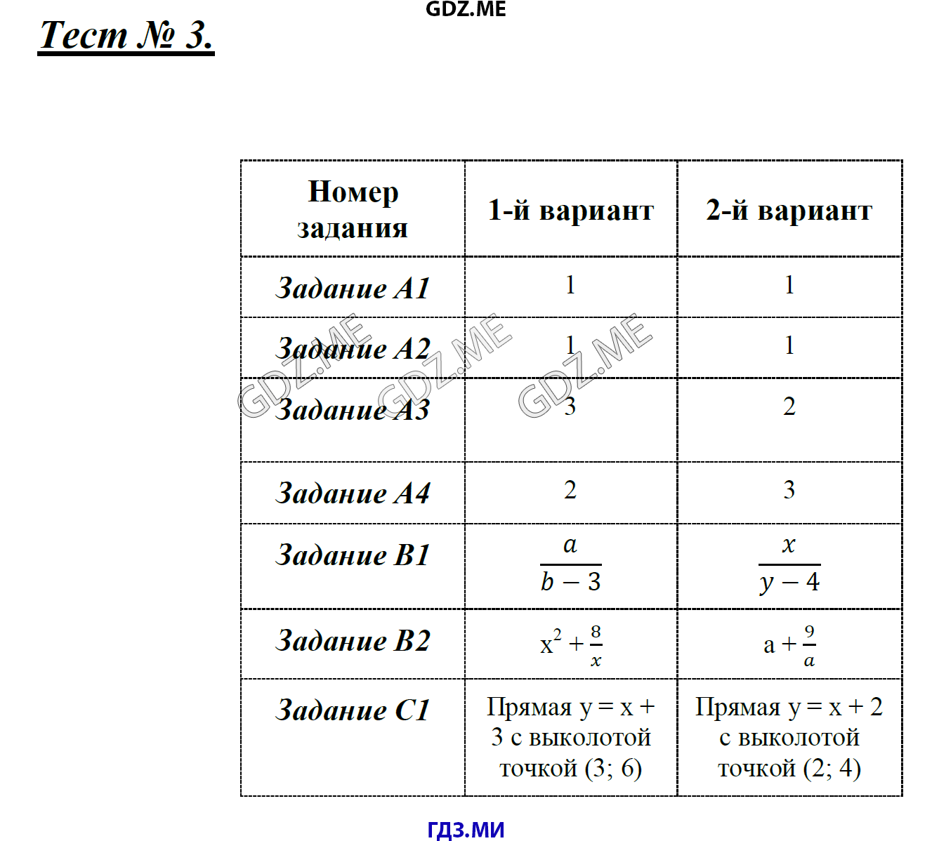 Подробный вариант решения из решебника (ГДЗ): Задание номер Тест 3 по предмету Алгебра, за 8 класс, авторы учебника Черноруцкий В.В..