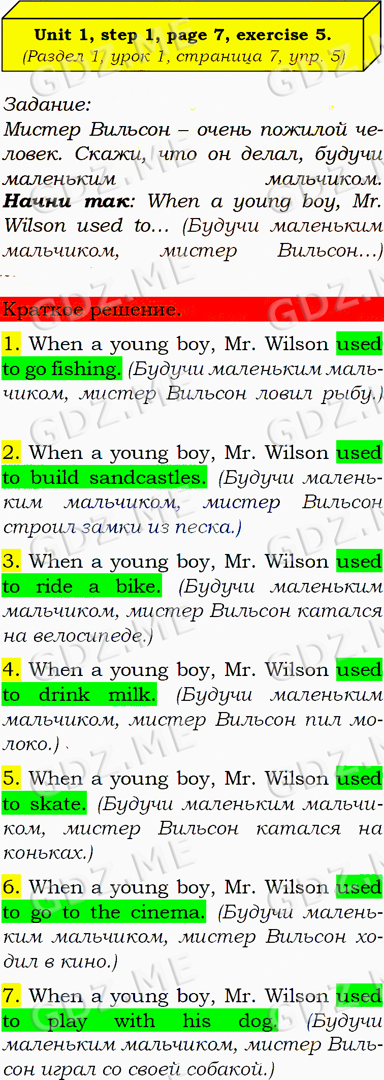 Подробный вариант решения из решебника (ГДЗ): Задание номер 5 (Unit 1. Step 1) по предмету Английский язык, за 8 класс, авторы учебника О.В. Афанасьева, И.В. Михеева, К.М. Баранова.