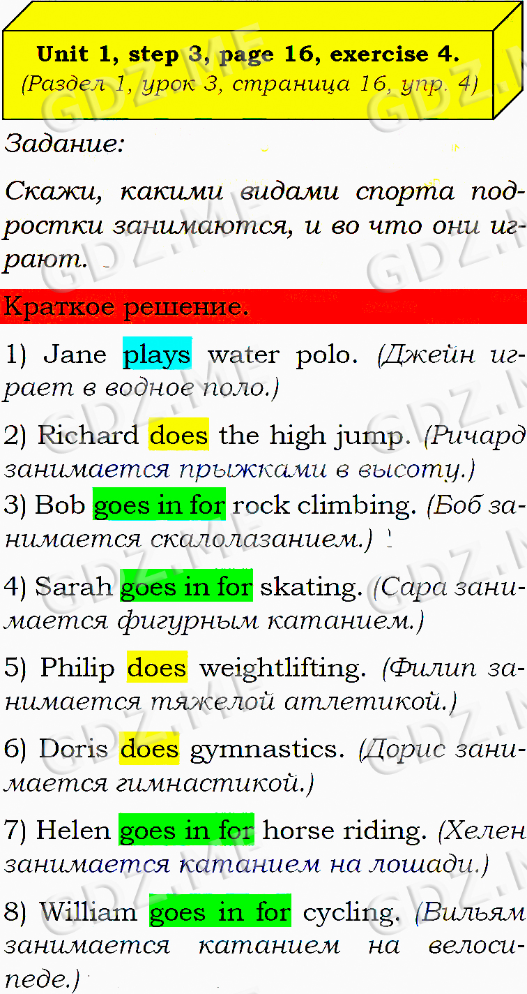 Подробный вариант решения из решебника (ГДЗ): Задание номер 4 (Unit 1. Step 3) по предмету Английский язык, за 8 класс, авторы учебника О.В. Афанасьева, И.В. Михеева, К.М. Баранова.