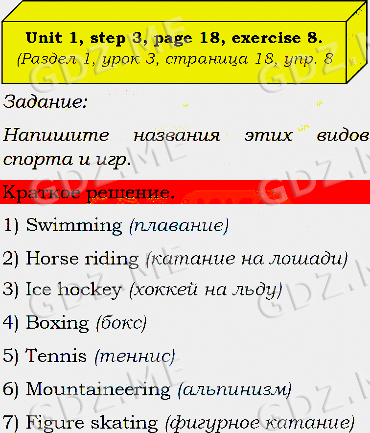 Подробный вариант решения из решебника (ГДЗ): Задание номер 8 (Unit 1. Step 3) по предмету Английский язык, за 8 класс, авторы учебника О.В. Афанасьева, И.В. Михеева, К.М. Баранова.