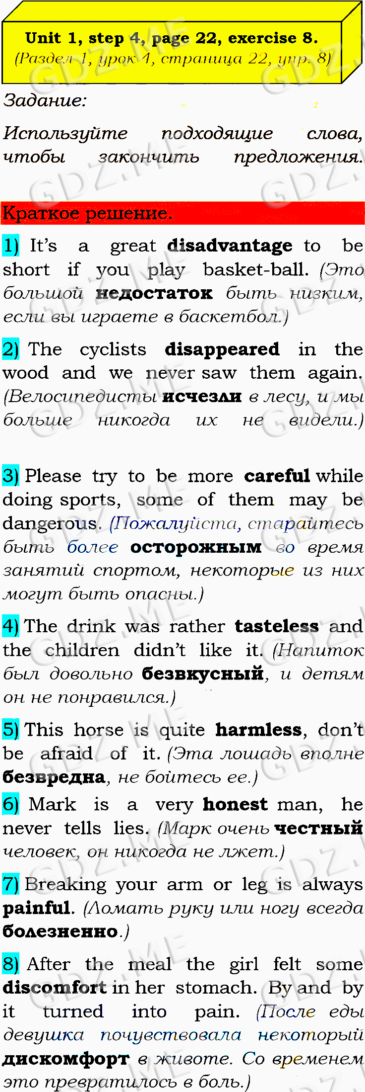 Подробный вариант решения из решебника (ГДЗ): Задание номер 8 (Unit 1. Step 4) по предмету Английский язык, за 8 класс, авторы учебника О.В. Афанасьева, И.В. Михеева, К.М. Баранова.