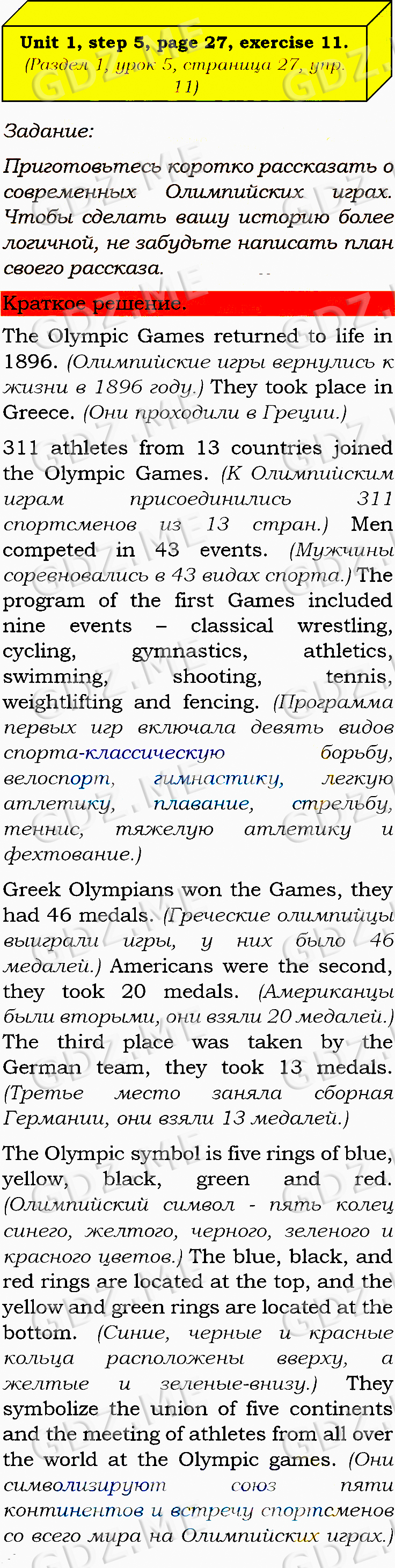 Подробный вариант решения из решебника (ГДЗ): Задание номер 11 (Unit 1. Step 5) по предмету Английский язык, за 8 класс, авторы учебника О.В. Афанасьева, И.В. Михеева, К.М. Баранова.