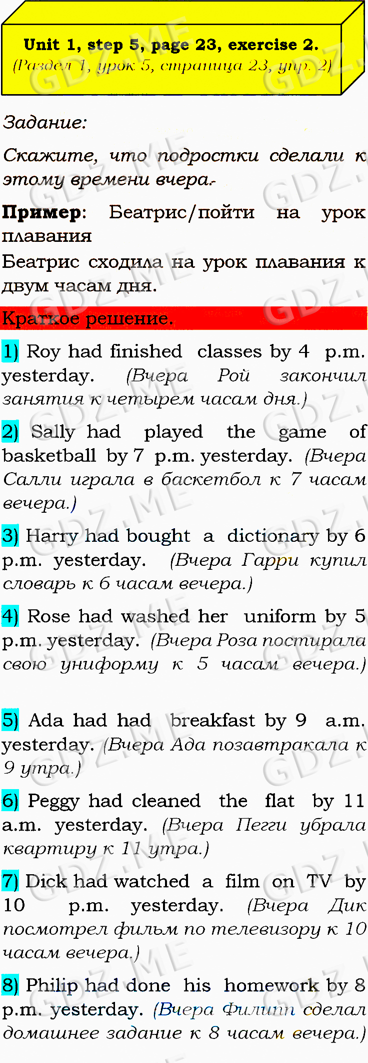 Подробный вариант решения из решебника (ГДЗ): Задание номер 2 (Unit 1. Step 5) по предмету Английский язык, за 8 класс, авторы учебника О.В. Афанасьева, И.В. Михеева, К.М. Баранова.