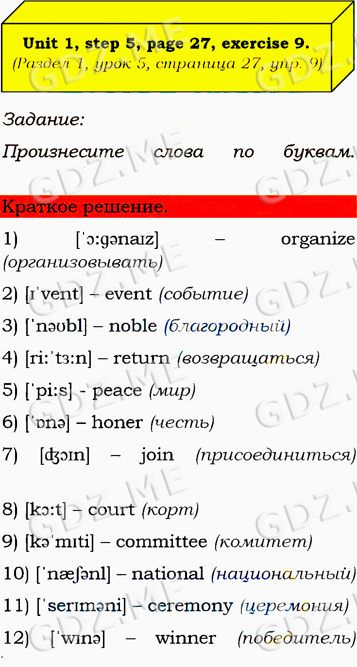 Подробный вариант решения из решебника (ГДЗ): Задание номер 9 (Unit 1. Step 5) по предмету Английский язык, за 8 класс, авторы учебника О.В. Афанасьева, И.В. Михеева, К.М. Баранова.