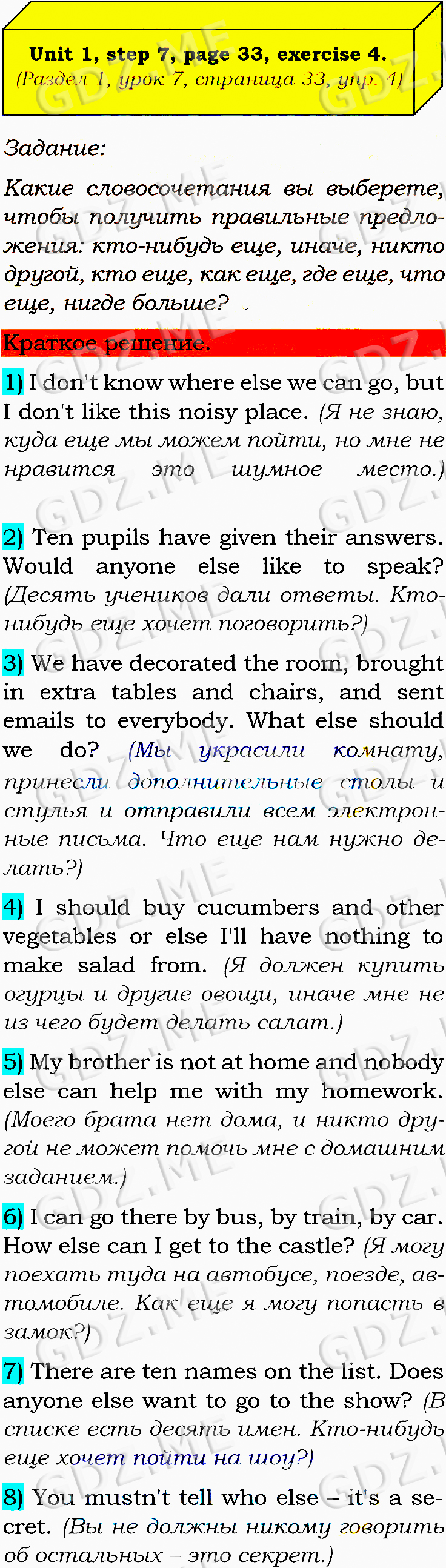 Подробный вариант решения из решебника (ГДЗ): Задание номер 4 (Unit 1. Step 7) по предмету Английский язык, за 8 класс, авторы учебника О.В. Афанасьева, И.В. Михеева, К.М. Баранова.