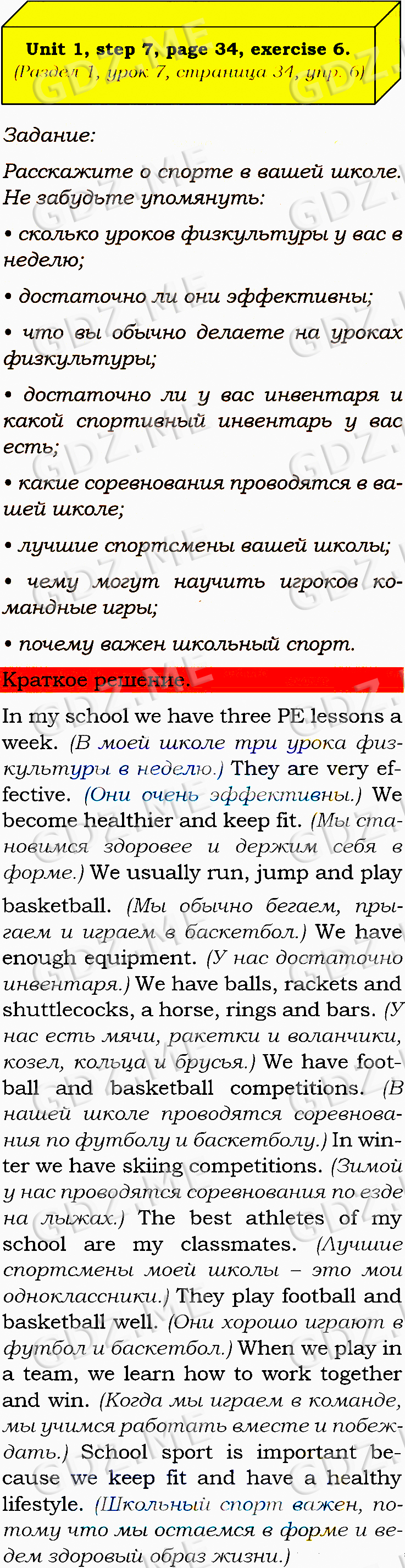 Подробный вариант решения из решебника (ГДЗ): Задание номер 6 (Unit 1. Step 7) по предмету Английский язык, за 8 класс, авторы учебника О.В. Афанасьева, И.В. Михеева, К.М. Баранова.