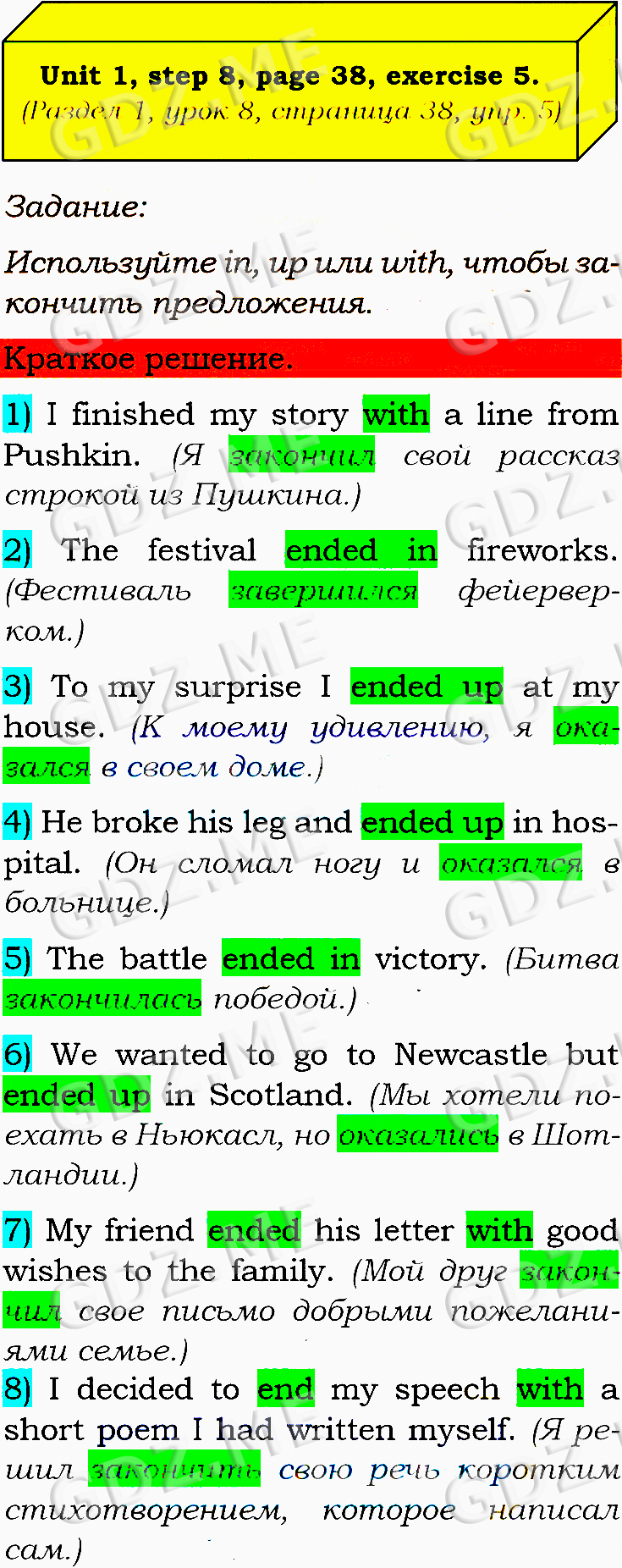 Подробный вариант решения из решебника (ГДЗ): Задание номер 5 (Unit 1. Step 8) по предмету Английский язык, за 8 класс, авторы учебника О.В. Афанасьева, И.В. Михеева, К.М. Баранова.