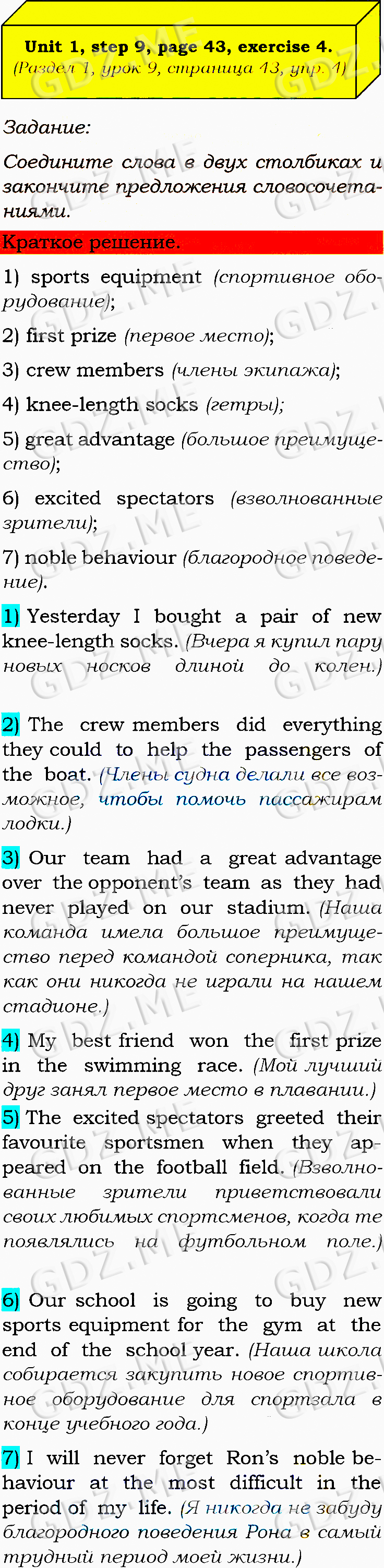 Подробный вариант решения из решебника (ГДЗ): Задание номер 4 (Unit 1. Step 9) по предмету Английский язык, за 8 класс, авторы учебника О.В. Афанасьева, И.В. Михеева, К.М. Баранова.