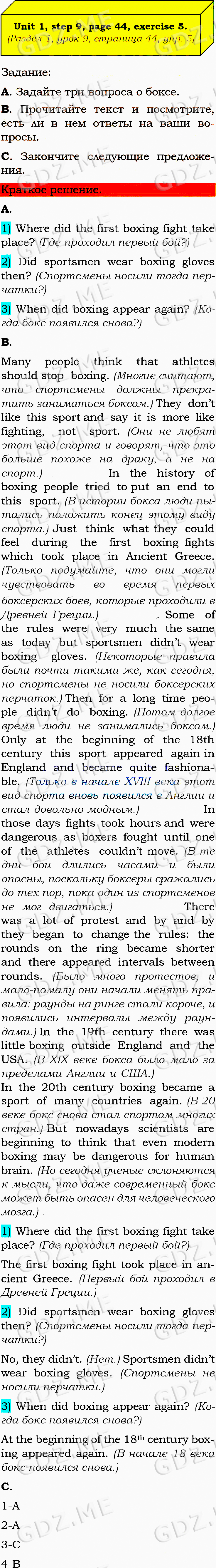 Подробный вариант решения из решебника (ГДЗ): Задание номер 5 (Unit 1. Step 9) по предмету Английский язык, за 8 класс, авторы учебника О.В. Афанасьева, И.В. Михеева, К.М. Баранова.