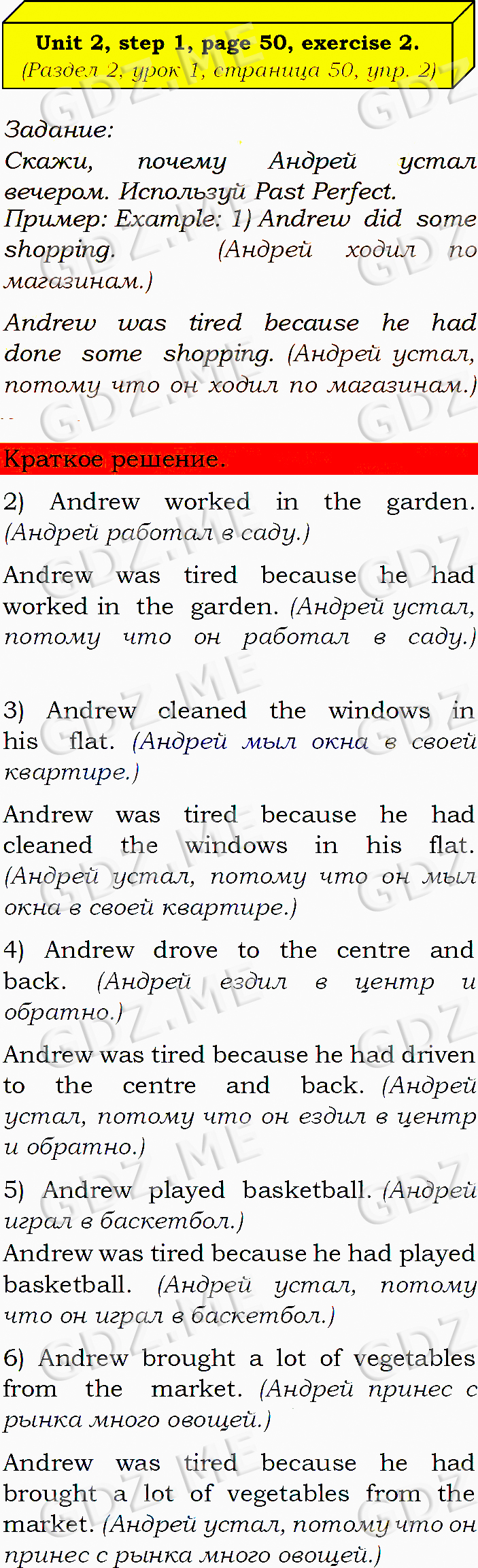 Подробный вариант решения из решебника (ГДЗ): Задание номер 2 (Unit 2. Step 1) по предмету Английский язык, за 8 класс, авторы учебника О.В. Афанасьева, И.В. Михеева, К.М. Баранова.