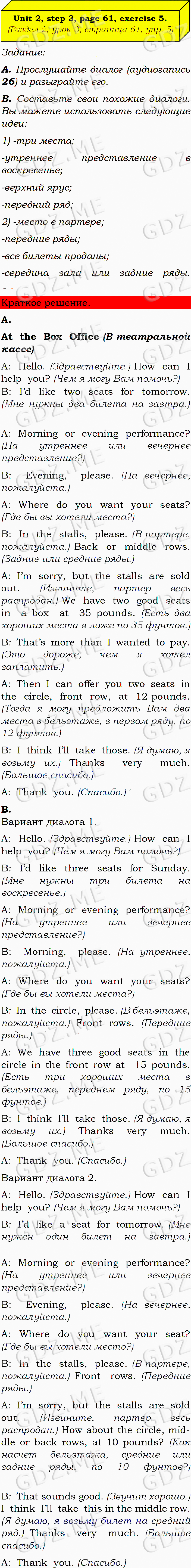 Подробный вариант решения из решебника (ГДЗ): Задание номер 5 (Unit 2. Step 3) по предмету Английский язык, за 8 класс, авторы учебника О.В. Афанасьева, И.В. Михеева, К.М. Баранова.