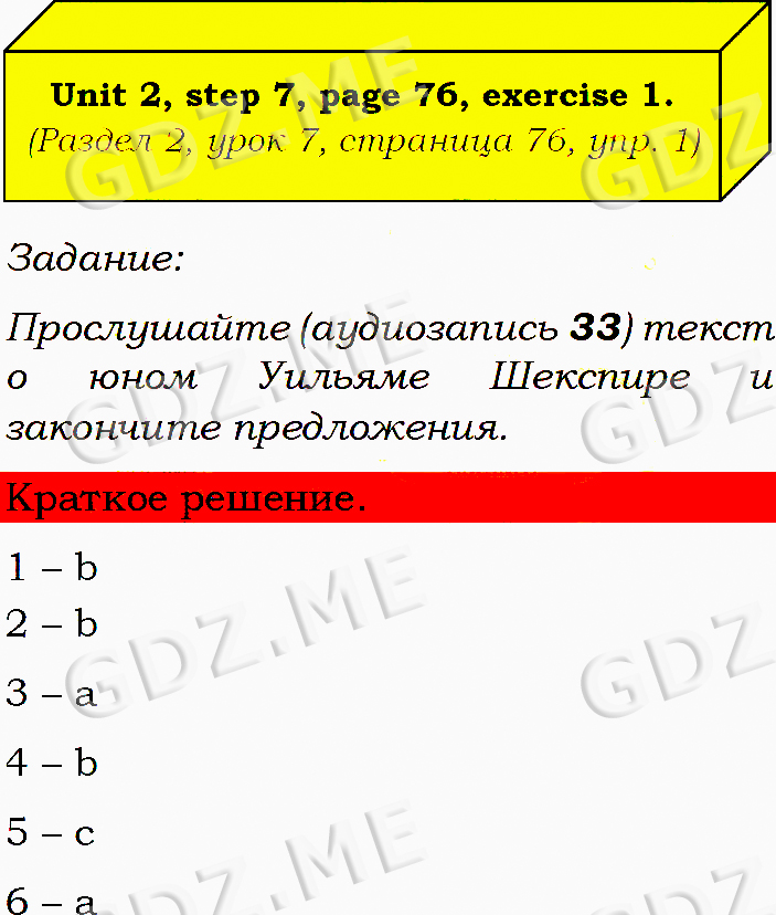 Подробный вариант решения из решебника (ГДЗ): Задание номер 1 (Unit 2. Step 7) по предмету Английский язык, за 8 класс, авторы учебника О.В. Афанасьева, И.В. Михеева, К.М. Баранова.