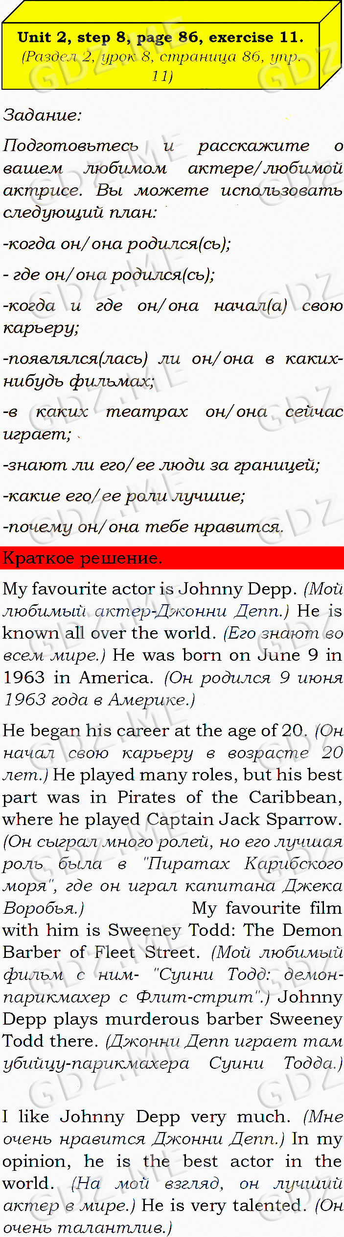 Подробный вариант решения из решебника (ГДЗ): Задание номер 11 (Unit 2. Step 8) по предмету Английский язык, за 8 класс, авторы учебника О.В. Афанасьева, И.В. Михеева, К.М. Баранова.