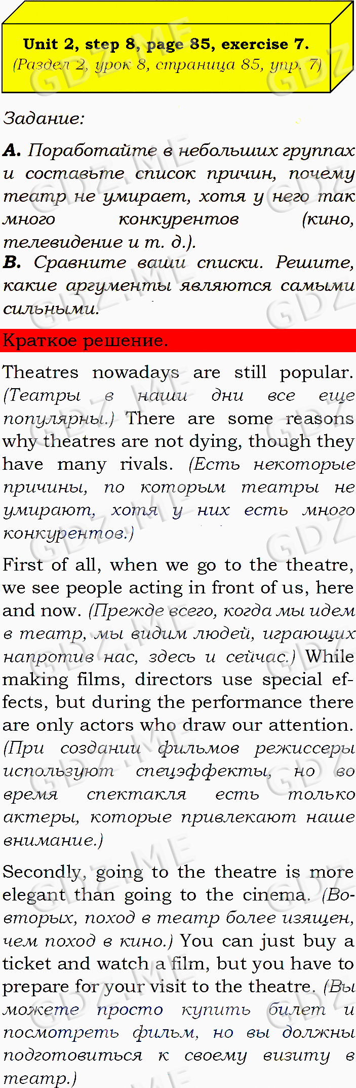 Подробный вариант решения из решебника (ГДЗ): Задание номер 7 (Unit 2. Step 8) по предмету Английский язык, за 8 класс, авторы учебника О.В. Афанасьева, И.В. Михеева, К.М. Баранова.