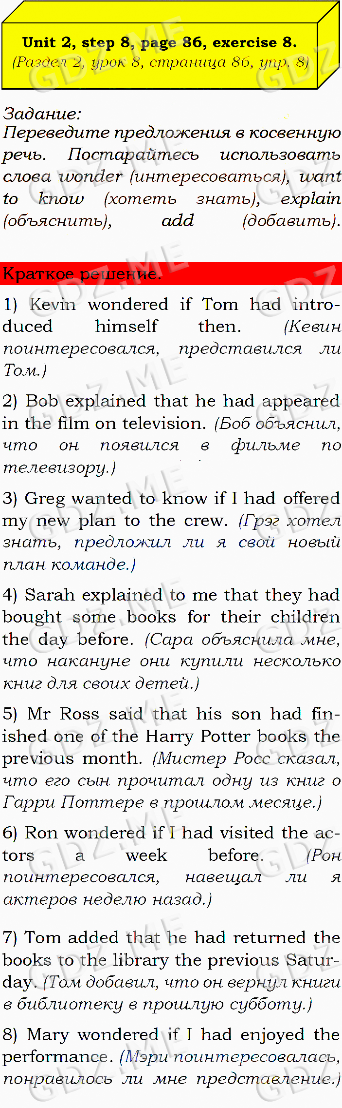 Подробный вариант решения из решебника (ГДЗ): Задание номер 8 (Unit 2. Step 8) по предмету Английский язык, за 8 класс, авторы учебника О.В. Афанасьева, И.В. Михеева, К.М. Баранова.