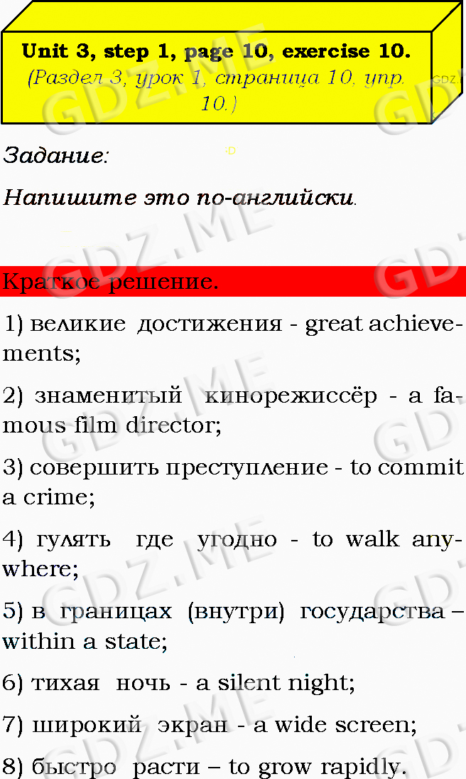 Подробный вариант решения из решебника (ГДЗ): Задание номер 10 (Unit 2. Unit 3. Step 1) по предмету Английский язык, за 8 класс, авторы учебника О.В. Афанасьева, И.В. Михеева, К.М. Баранова.