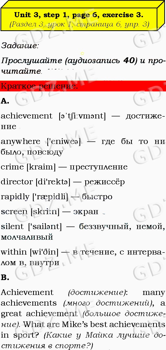 Подробный вариант решения из решебника (ГДЗ): Задание номер 3 (Unit 2. Unit 3. Step 1) по предмету Английский язык, за 8 класс, авторы учебника О.В. Афанасьева, И.В. Михеева, К.М. Баранова.