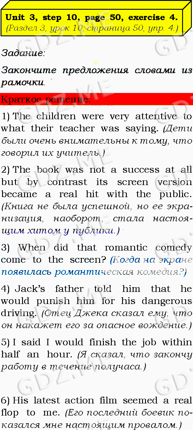 Подробный вариант решения из решебника (ГДЗ): Задание номер 4 (Unit 2. Unit 3. Step 10) по предмету Английский язык, за 8 класс, авторы учебника О.В. Афанасьева, И.В. Михеева, К.М. Баранова.