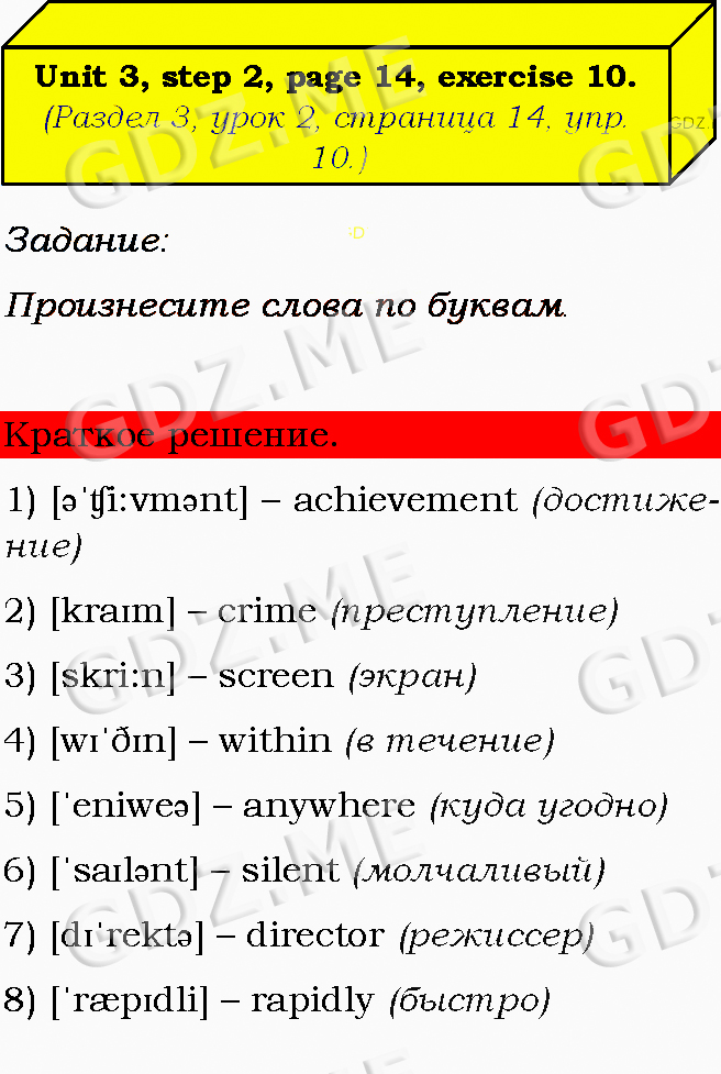 Подробный вариант решения из решебника (ГДЗ): Задание номер 10 (Unit 2. Unit 3. Step 2) по предмету Английский язык, за 8 класс, авторы учебника О.В. Афанасьева, И.В. Михеева, К.М. Баранова.