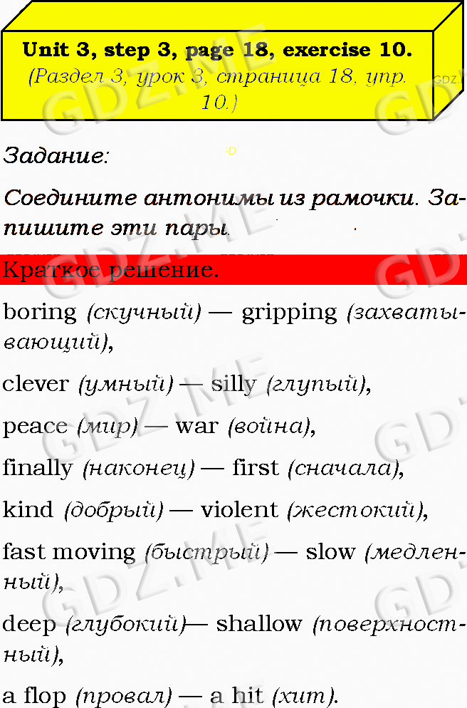 Подробный вариант решения из решебника (ГДЗ): Задание номер 10 (Unit 2. Unit 3. Step 3) по предмету Английский язык, за 8 класс, авторы учебника О.В. Афанасьева, И.В. Михеева, К.М. Баранова.