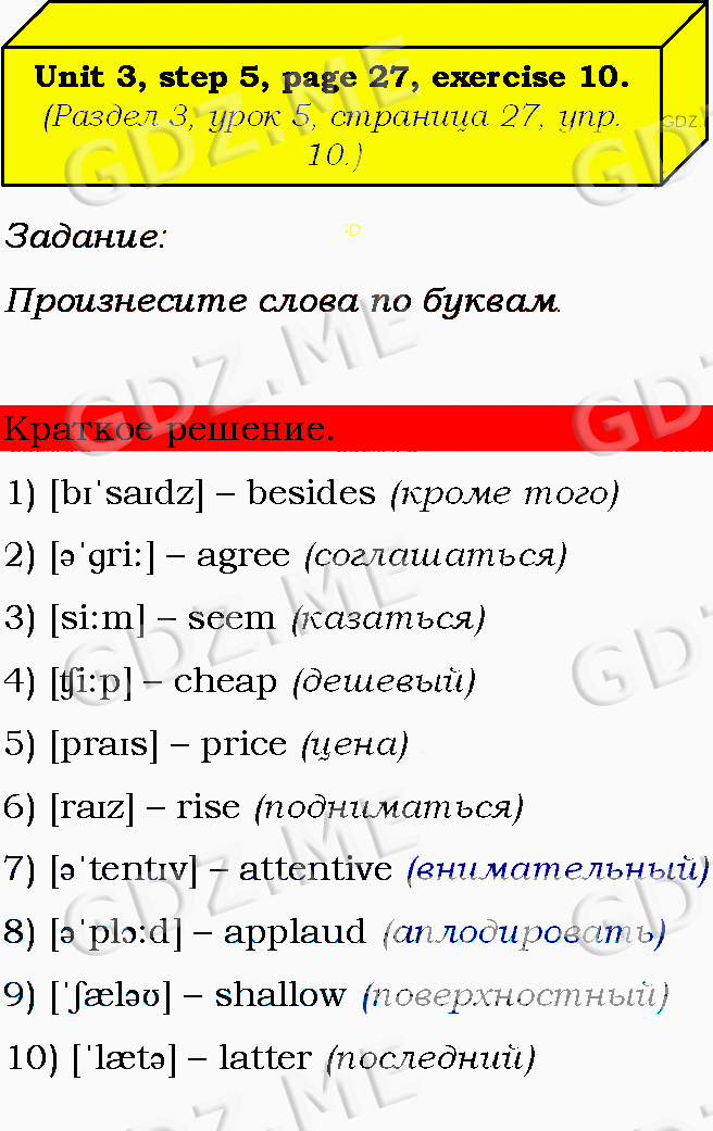 Подробный вариант решения из решебника (ГДЗ): Задание номер 10 (Unit 2. Unit 3. Step 5) по предмету Английский язык, за 8 класс, авторы учебника О.В. Афанасьева, И.В. Михеева, К.М. Баранова.