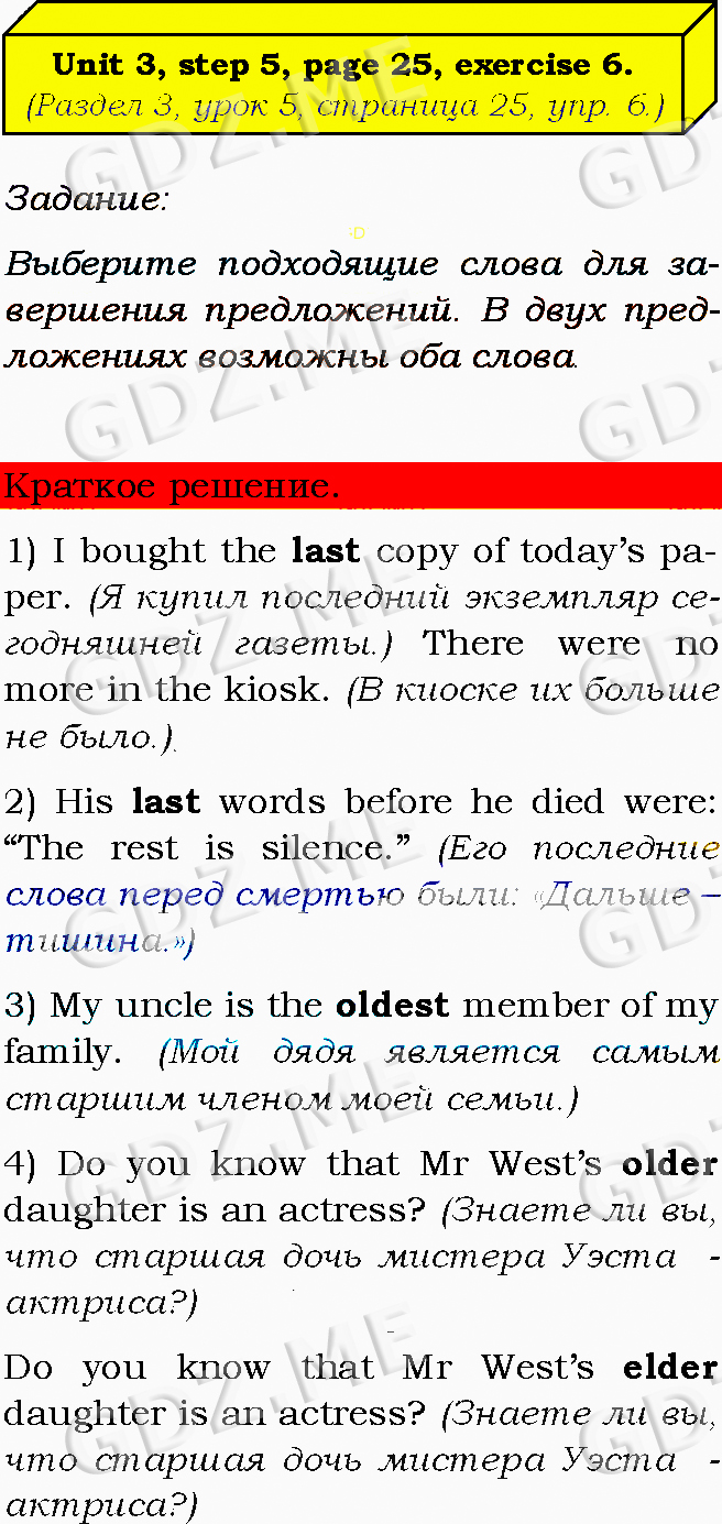 Подробный вариант решения из решебника (ГДЗ): Задание номер 6 (Unit 2. Unit 3. Step 5) по предмету Английский язык, за 8 класс, авторы учебника О.В. Афанасьева, И.В. Михеева, К.М. Баранова.